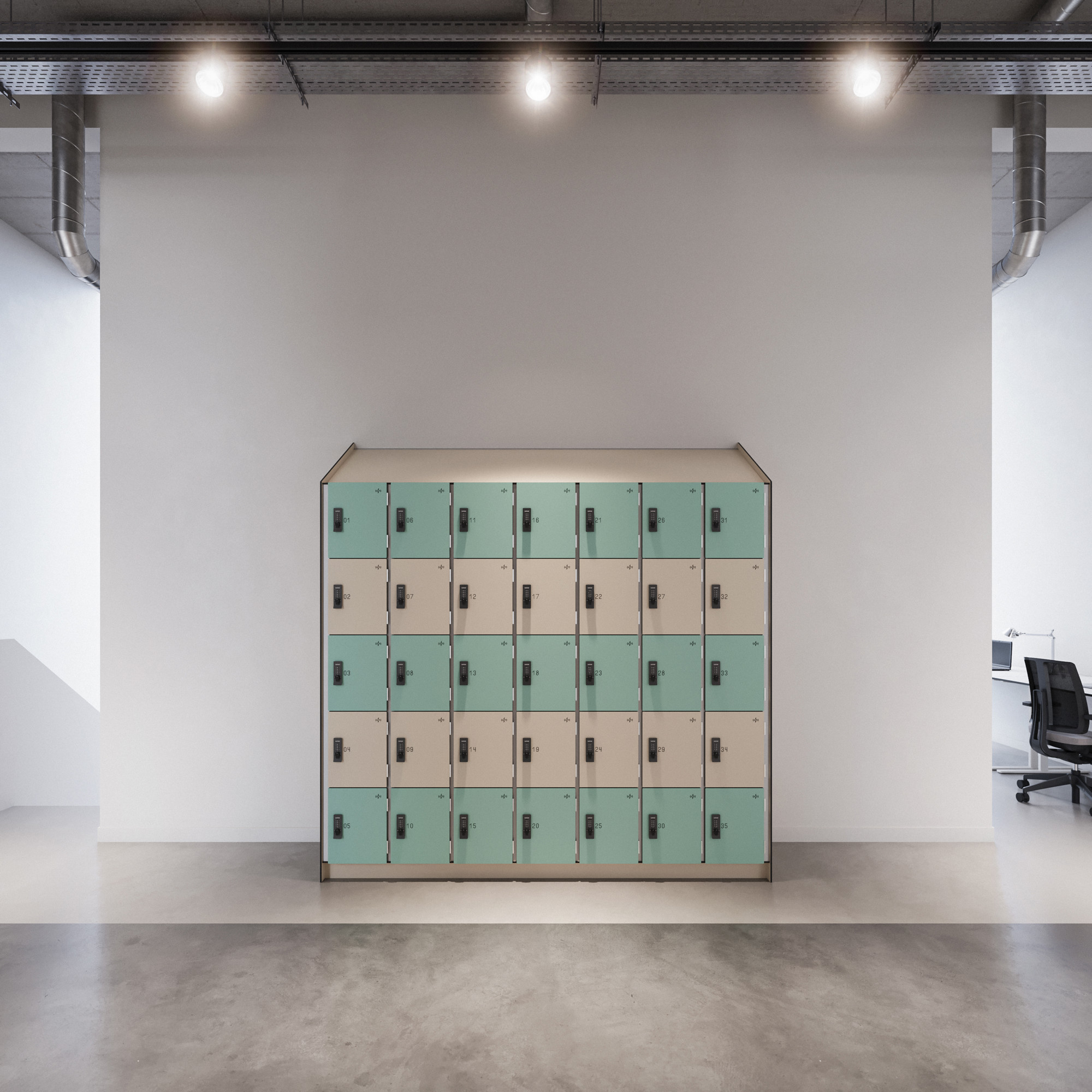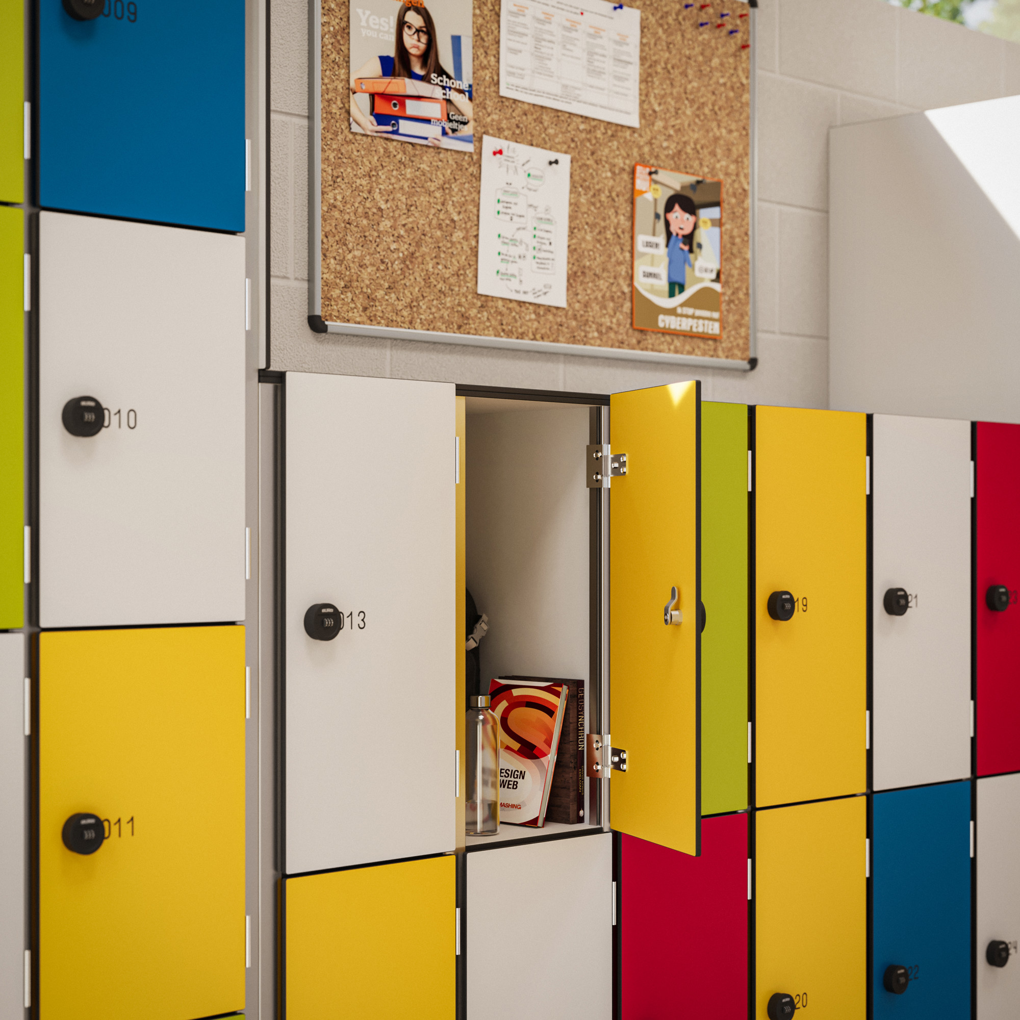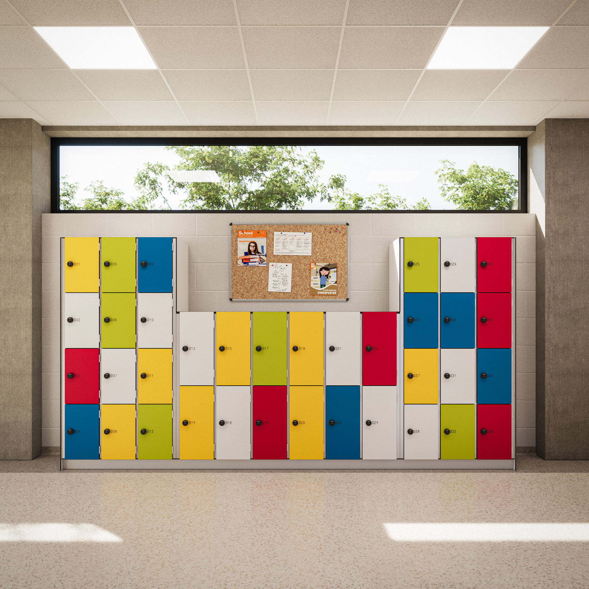 - Laag : 2 of 3 lockers per kolom