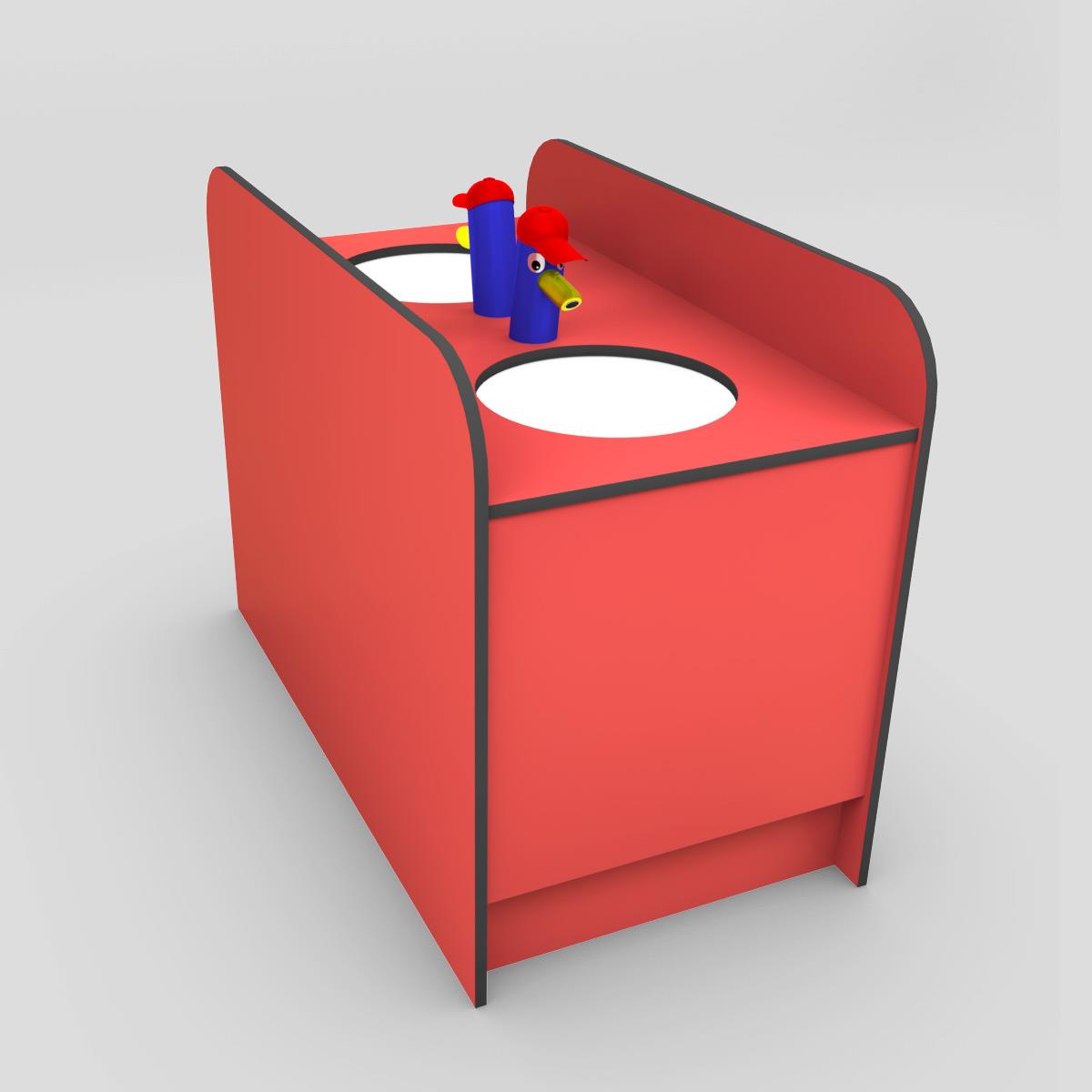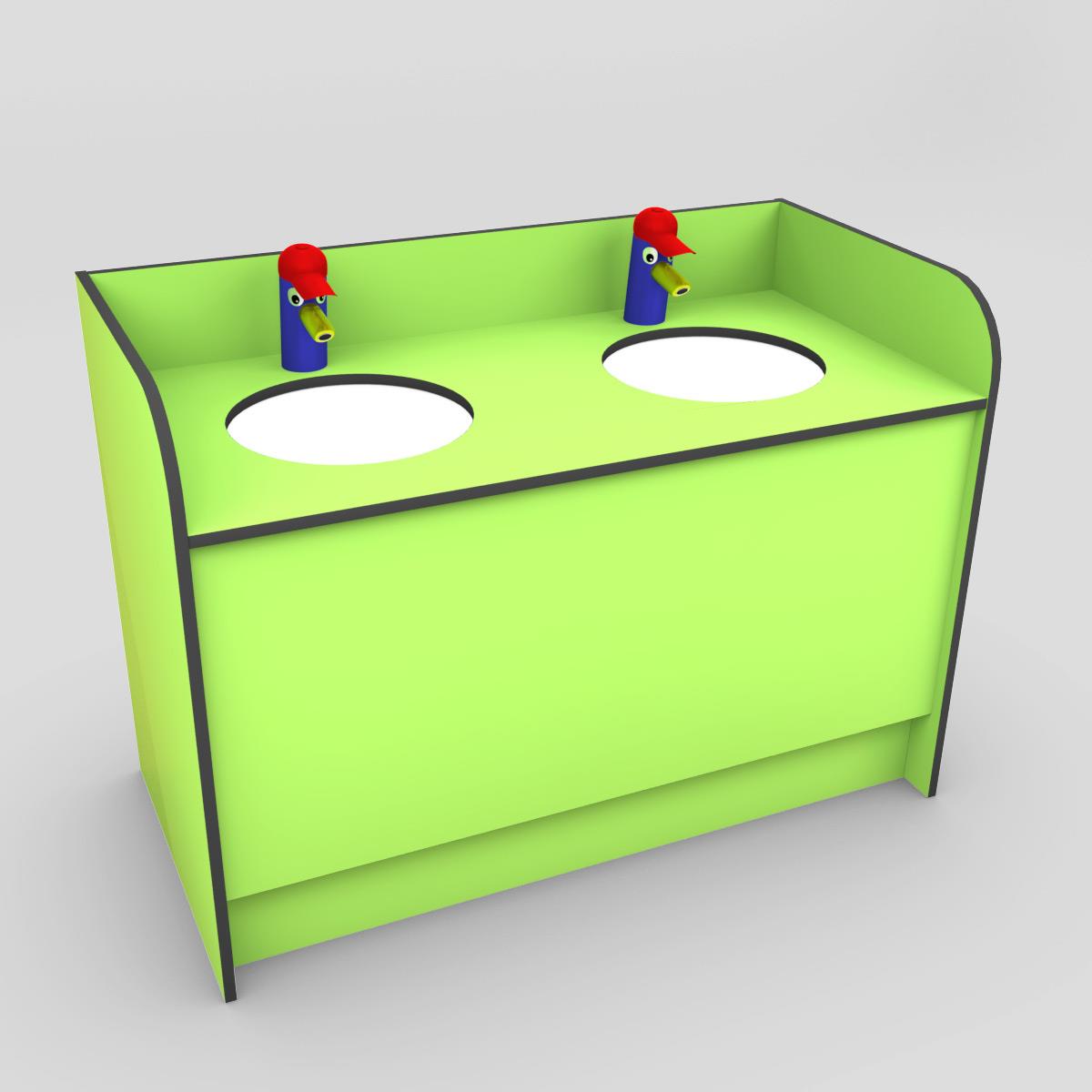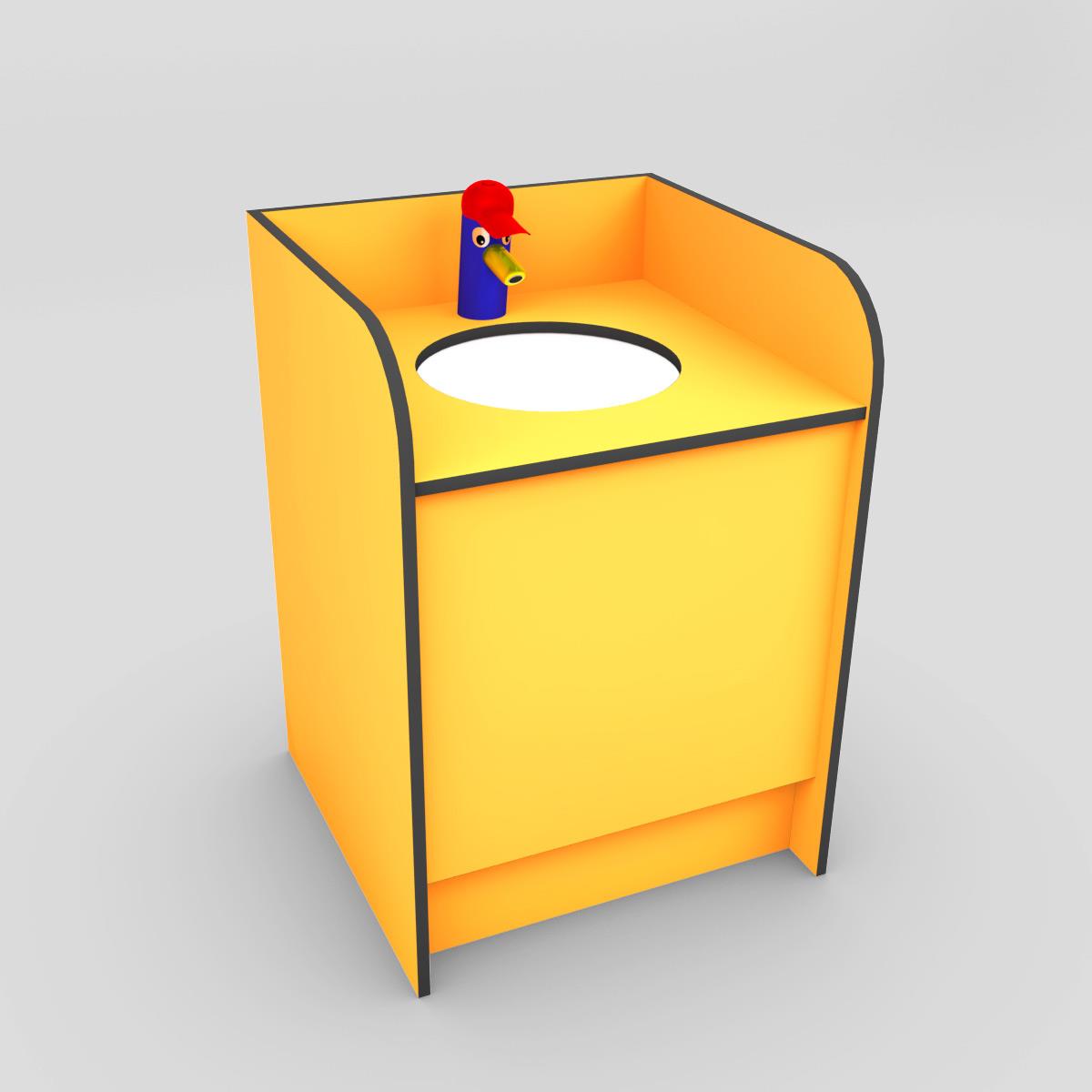 De meubels worden voorzien van een kleuterlavabo met kinderkraan incl. toebehoren voor aansluiting op afvoerbuis.